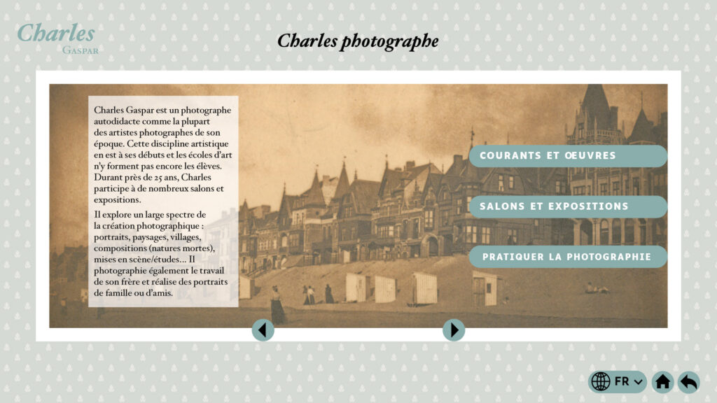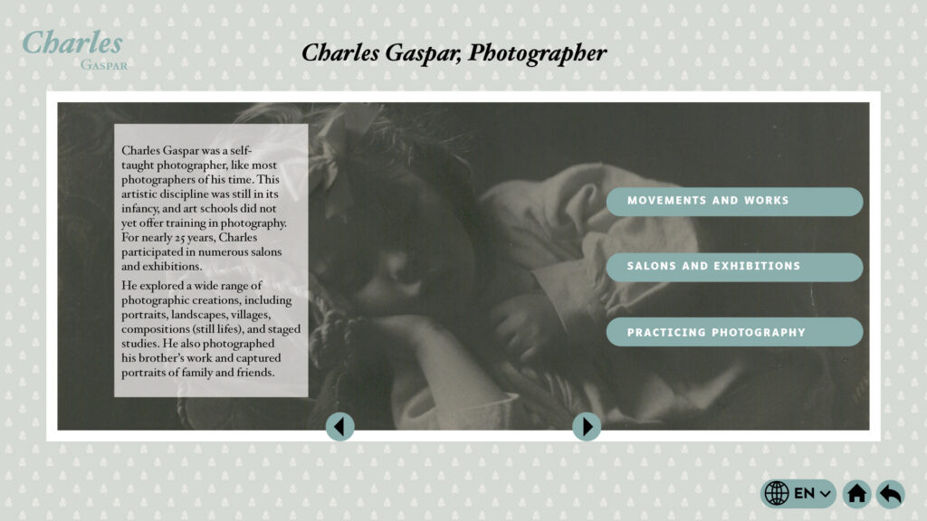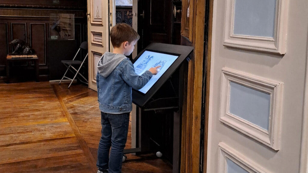 Dans le cadre de ce projet, nous avons conçu et réalisé deux bornes interactives intégrant environ 20 minutes de films, des dizaines de diapositives pédagogiques et un accès à plusieurs centaines d’images d’archives. Ces dispositifs permettent aux visiteurs d’explorer les contenus de manière autonome, ludique et immersive, tout en valorisant le patrimoine et les ressources documentaires du projet.
